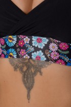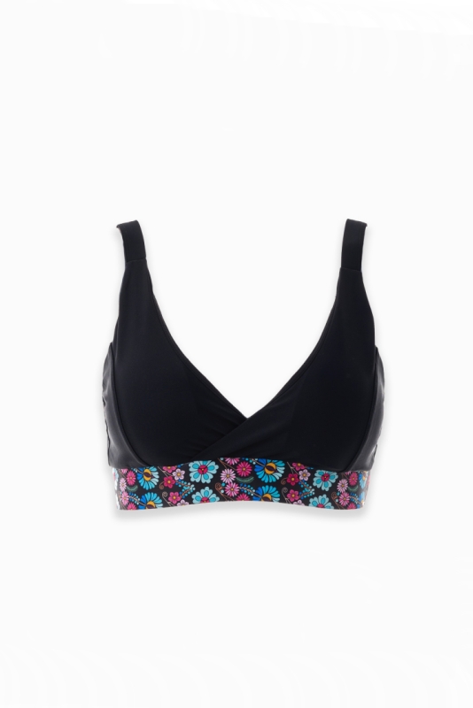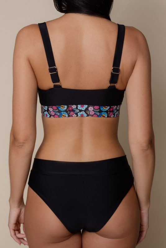 A termék megvásárlásával automatikusan támogatja az írónő, Božena Slančíková-Timrava szülőházának felújítására indított gyűjtést. Fekete fürdőruha felső színes mintával, amelyet Polichno hímzései inspiráltak – ez Božena Slančíková-Timrava írónő szülőfaluja. A modell 175 cm magas, és S méretet visel.