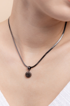 Gun bevonatú lánc Naprózsa medállal. A Napot mint az élet forrását, valamint a sötétség, a rossz erők és a balszerencse elleni védelmet szimbolizálja.
